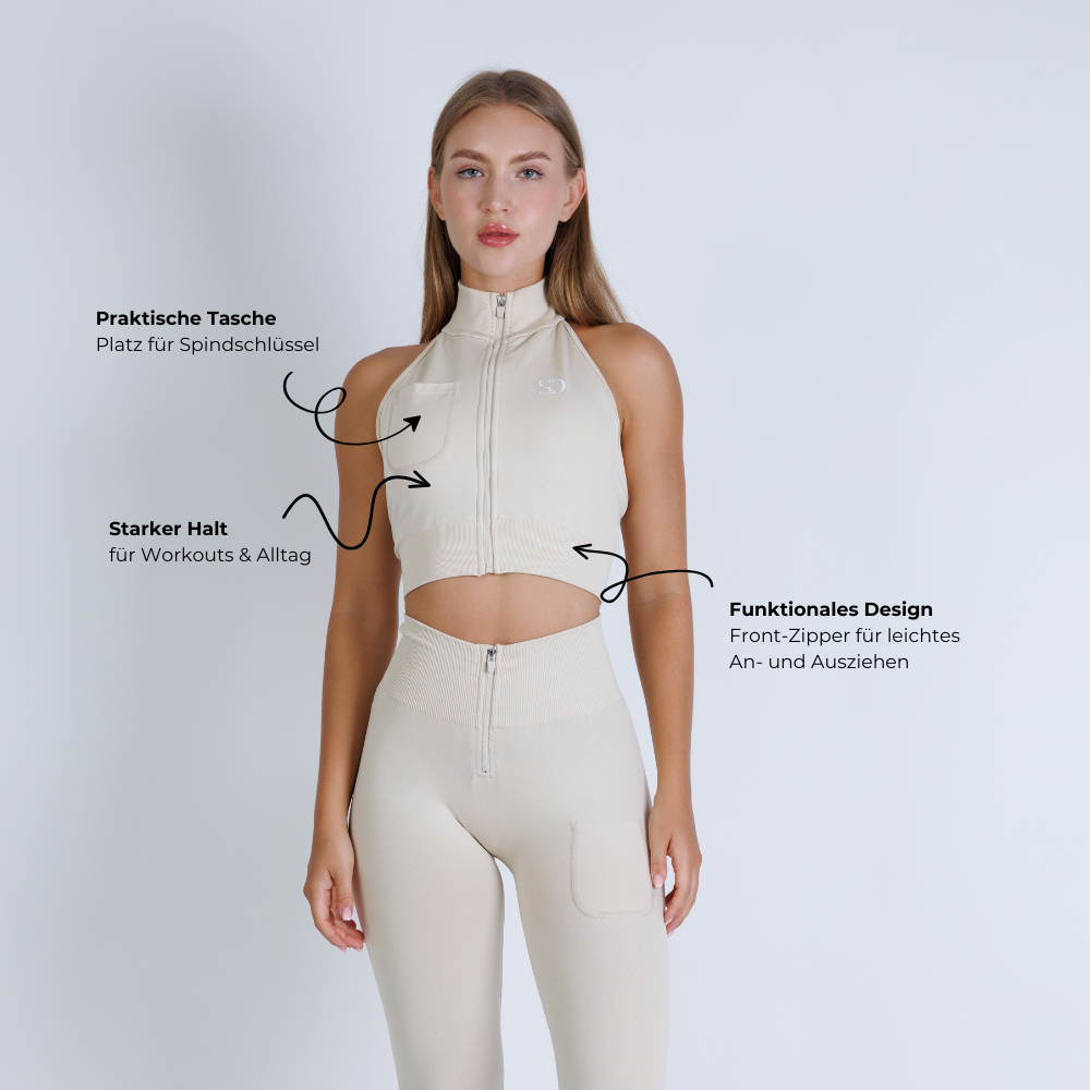 Unsere Designs stammen direkt aus dem Leben: von Frauen, die wissen, wie unbequem „normale“ Sportkleidung sein kann. Wir kombinieren feminines Design mit Funktion – für echten Support, wo du ihn brauchst.